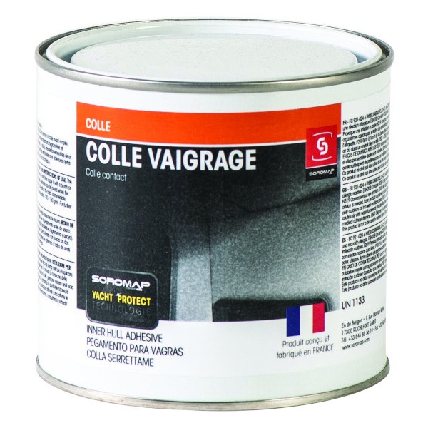 Colle à double encollage pour l'aménagement intérieur des bateaux (vaigrages, moquettes, ...)