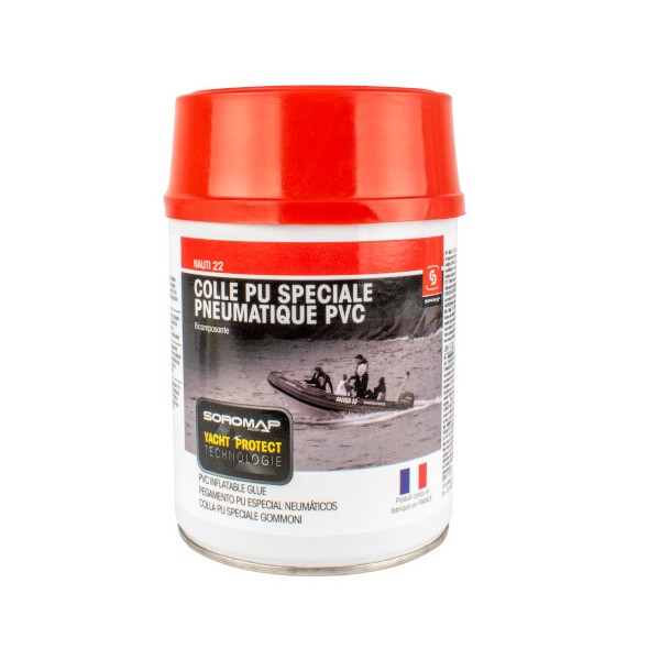 Colle polyuréthanne 2 composants. Collage des tissus élastomères et plastomères desembarcations pneumatiques en PVC.